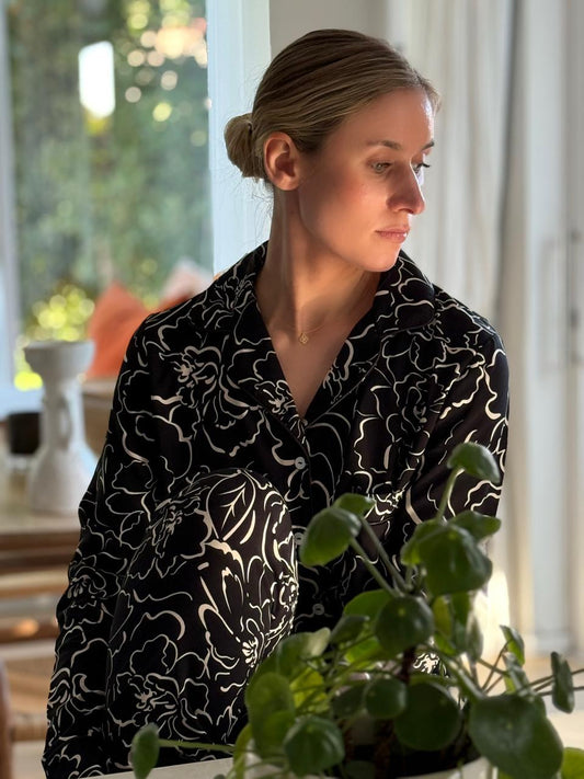 Winter Monotone | Classic PJ | Black with White Floral